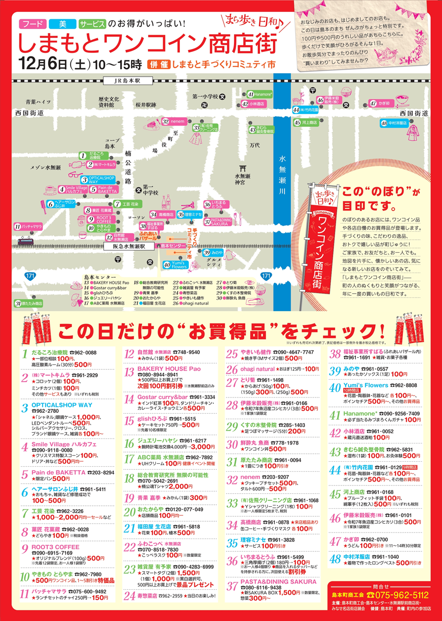 場 所:島本センター・水無瀬駅前商店街・みなせ名店街・水無瀬駅周辺および町内の参加店舗