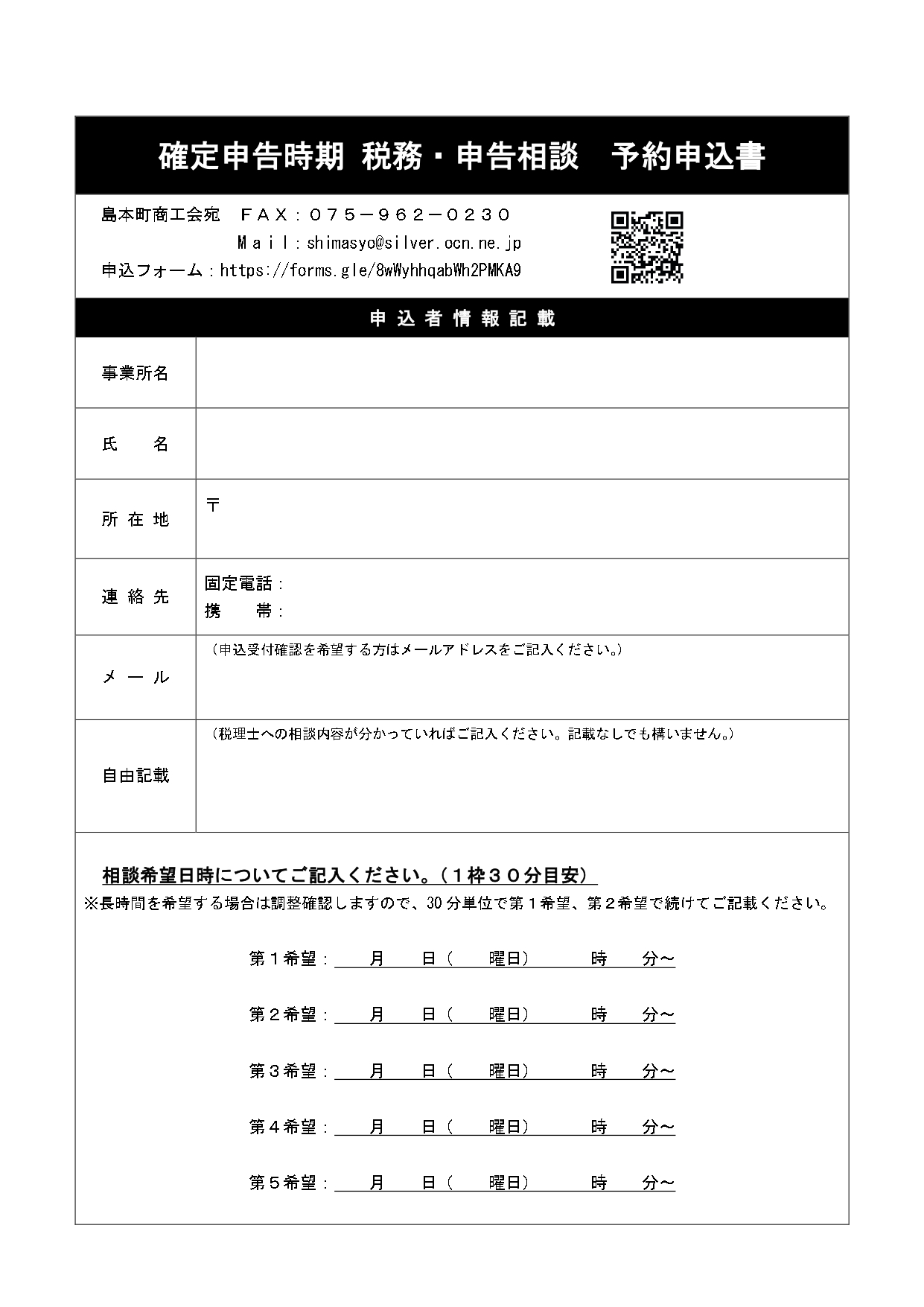・この申告相談は、業務代行ではありません。また事業規模等によっては相談対応できない場合がございます。