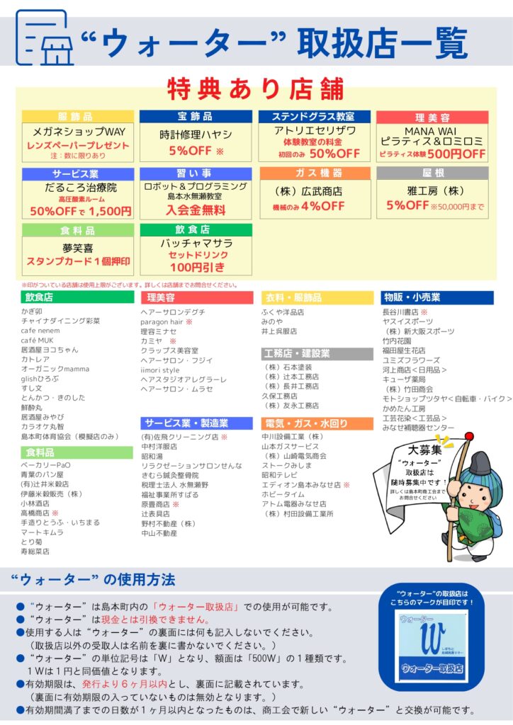 - 「ウォーター」は島本町内の「ウォーター取扱店」での使用が可能です。